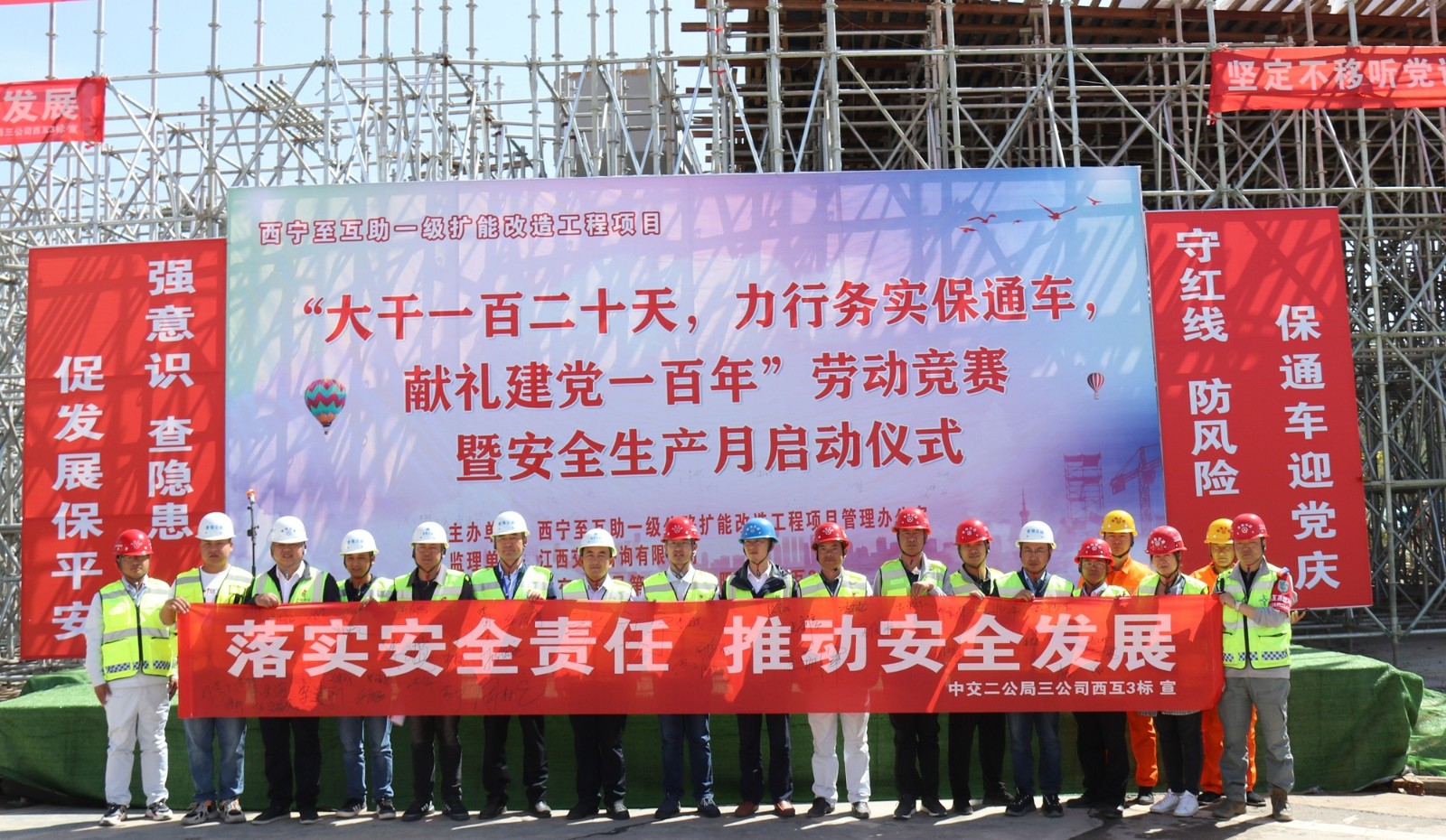 6月3日上午10点,西互项目“大干一百二十天,力行务实保通车,献礼建党一百年劳动竞赛暨安全生产月”启动仪式在西互项目韵家口互通区施工现场顺利举行。西互公司、西互项目办、各参建单位管理人员、劳务人员代表共计90余人参加活动。